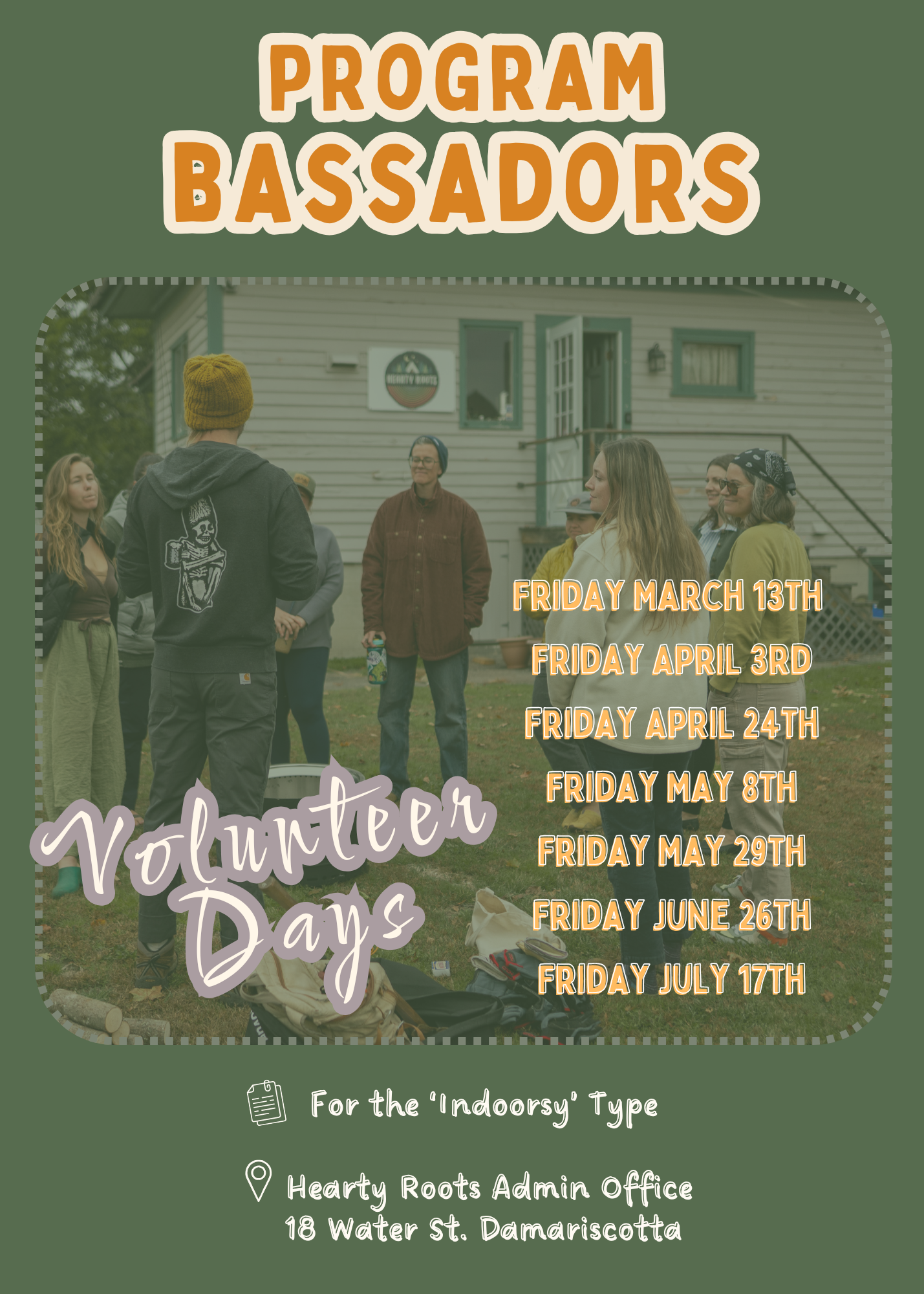 Programbassadors are volunteers who join us at your administrative headquarters every few Fridays. Show up between 10am and 1pm.